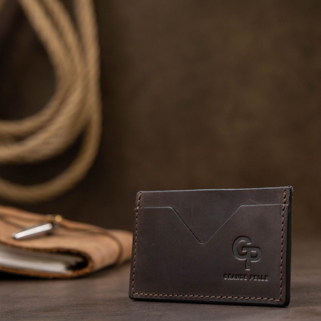 Небольшой кожаный картхолдер для хранения самых важных карточек. Выполнен из натуральной кожи с отличными эксплуатационными характеристиками, поэтому прослужит Вам очень долго. Цвет изделия – универсальный коричневый. Упаковка представлена в виде фирменного чехла с логотипом бренда.