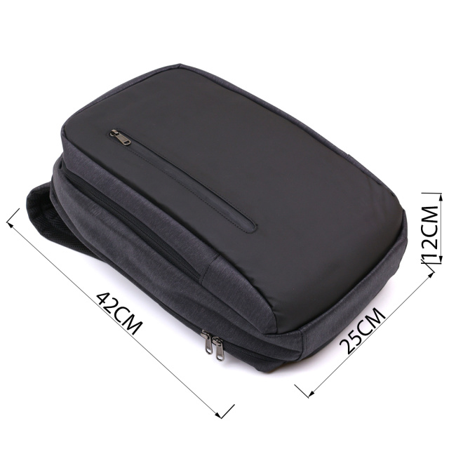 Текстильный мужской рюкзак в городском стиле с очень практичным наполнением, которое представлено в виде двух вместительных отделений, кармана для ноутбука, для телефонов, ручки, сетчатого кармана и пр. А для того, чтобы содержимое рюкзака не болталось и было аккуратно сложено, предусмотрены специальные ремешки с фиксатором. Изделие имеет красивое сочетание черного и темно-серого цветов.
