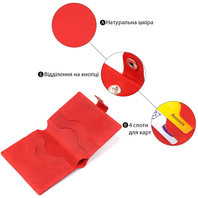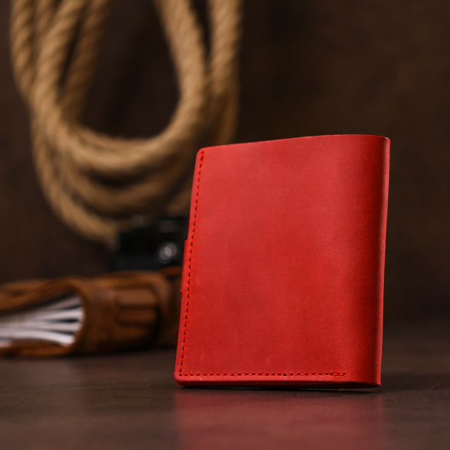 Превосходное компактное портмоне в женственном красном цвете и матовой гладкой фактуре от украинского производителя. Материал изготовления – натуральная кожа с отменными эксплуатационными характеристиками. Внутри есть просторное основное отделение на всю длину для купюр и слоты для пластиковых карточек. Смотрится данная вещь очень красиво и стильно.