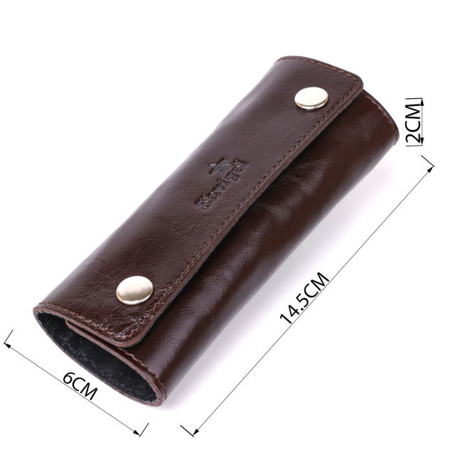 Удобная и практична ключница для надежного хранения Ваших ключей. Выполнен аксессуар из натуральной высококлассной кожи с высокими показателями прочности. Ключи крепятся с помощью шести карабинов внутри изделия, которое закрывается на две кнопки. Такую ключницу можно подарить на любой праздник дорогому Вам человеку.