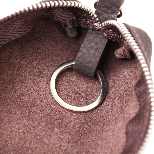Очень красивая и стильная ключница в матовом коричневом цвете, что смотрится очень необычно и современно. Материал изготовления – натуральная кожа высокого качества, которая на ощупь очень мягкая и приятная. Фактура изделия – зернистая, фурнитура сделана в цвете под серебро, закрывается аксессуар на удобную молнию.