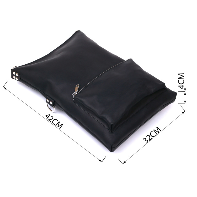 Женская сумка в интересном небанальном дизайне от украинского производителя. Материал изготовления – натуральная кожа с отличными показателями прочности и устойчивости к различного рода износу. Цвет сумки – универсальный черный, фактура – матовая гладкая. Внутреннее отделение очень просторное и вместительное, на внешней стороне есть накладной небольшой карман.