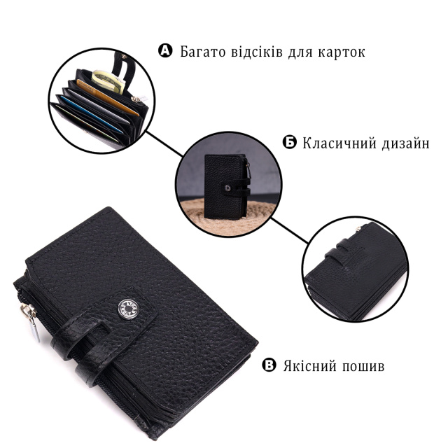Практичный картхолдер из натуральной зернистой кожи в классическом черном цвете. Изделие имеет четыре отделения с расширителем для карт и монетницу что закрывается на молнию. Аксессуар упакован в фирменную коробочку. Изделия из натуральной кожи всегда будут отличным подарком для близкого человека.