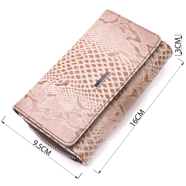 Превосходное женское лакированное портмоне в современном дизайне и нежном бежевом цвете. Изделие выполнено из натуральной кожи высокого качества. Портмоне имеет глубокое отделение для купюр, восемь ячеек для пластиковых карточек, два прилегающих кармана, два отделения под сеточкой и монетницу на молнии снаружи. Закрывается аксессуар на кнопку. Данный аксессуар прекрасно подойдет в качестве подарка и принесет любой женщине исключительную радость.
