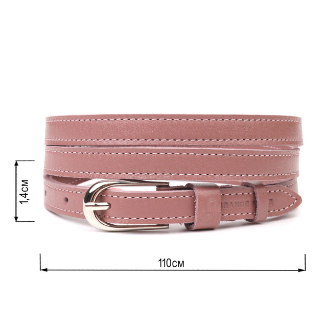 Нежный женский ремень из высококачественной итальянской кожи. Изделие прошито по краям ровной строчкой розового цвета, что придает ему стильного и изысканого вида. Аксессуар будет отлично сочетатся, как с брюками, так и с платьем, блузкой или туникой. Пряжка выполнена из качественной фурнитуры, с закругленными краями, очень аккуратная и стильная. Цвет пряжки: серебро. Тиснение логотипа бренда добавляет изделию стиля, а также служит залогом качества и оригинальности продукции. Кожаный ремень будет всегда актуальным подарком для себя, подруги или коллеги.
