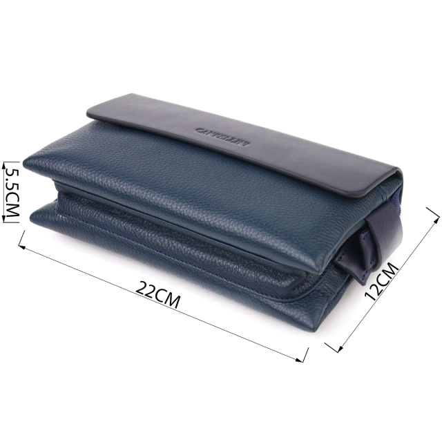 - снаружи на тыльной стороне мужского клатча расположена горизонтальная ручка для переноса в руке;