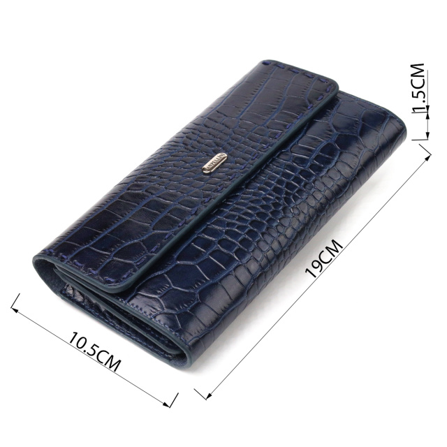 Большой женский кошелек из натуральной кожи с тиснением под крокодила CANPELLINI 21661 Синий