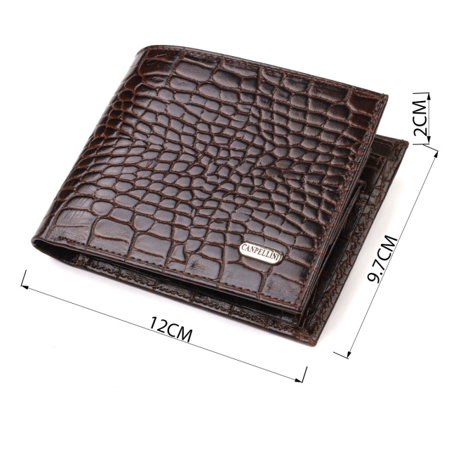 Горизонтальный мужской бумажник среднего размера из натуральной кожи с тиснением под крокодила CANPELLINI 21860 Коричневый