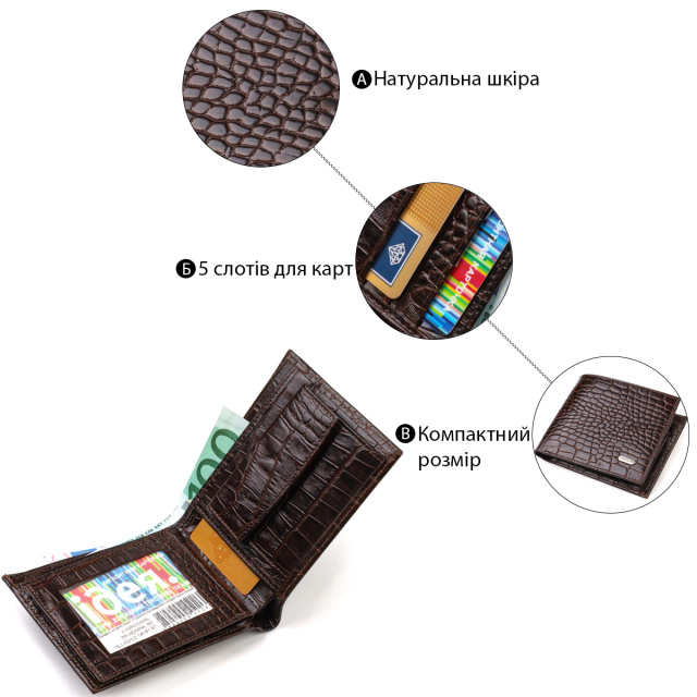 UA MarketКиївJANAВсе товарыТовари та послугиСумки мужскиеКошелькиМужские кошелькиГоризонтальный мужской бумажник среднего размера из натуральной кожи с тиснением под крокодила CANPELLINI 21860 Коричневый