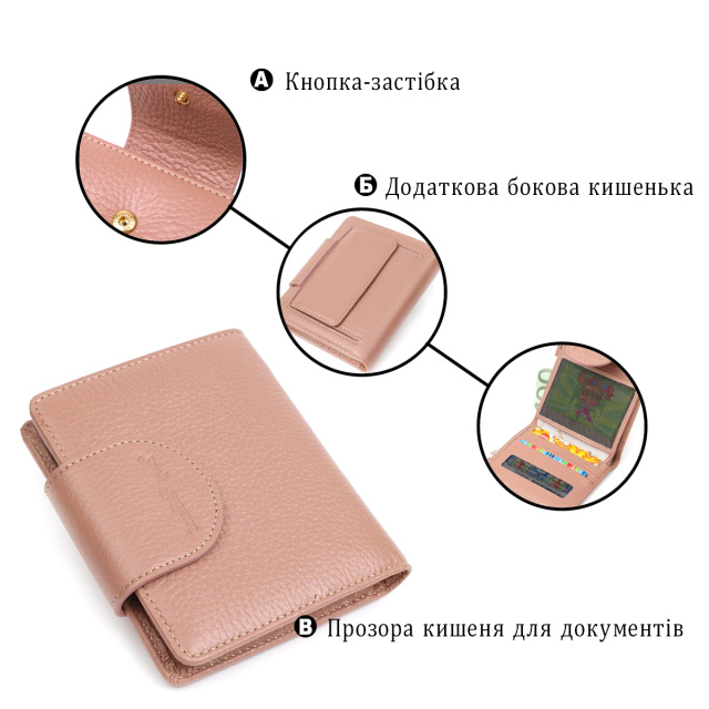 Красивый вместительный женский кошелек из натуральной кожи. Аксессуар состоит из двух широких отделений для купюр, девяти ячеек для пластиковых карт, двух прилегающих карманов, кармана под сеточкой и монетницы под клапаном снаружи. В изделии использована качественная фурнитура золотистого цвета. Закрывается кошелек кожаным хлястиком на кнопку. Покупая этот кожаный кошелек, Вы не только приобретаете стильную вещь, но и получаете качественный аксессуар, который прослужит не один год.