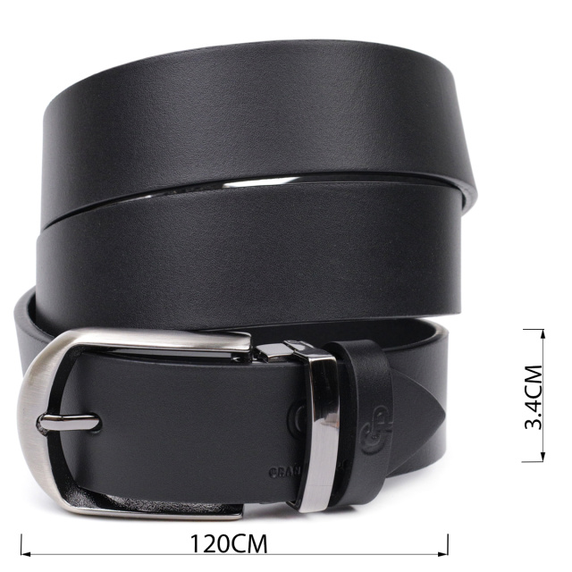 Качественный ремень для мужчин из высококачественной итальянской кожи отлично подойдет под брюки. Полукруглая пряжка выполнена из качественной фурнитуры, очень аккуратная и стильная. Цвет пряжки: серебро. Тиснение логотипа бренда добавляет изделию стиля, а также служит залогом качества и оригинальности продукции. Если Вы сомневаетесь, какой именно ремень выбрать для себя или на подарок, выбирайте классический вариант, такой как эта модель. Этот ремень подойдет практически к любым брюкам, а качеством Вы будете приятно удивлены.