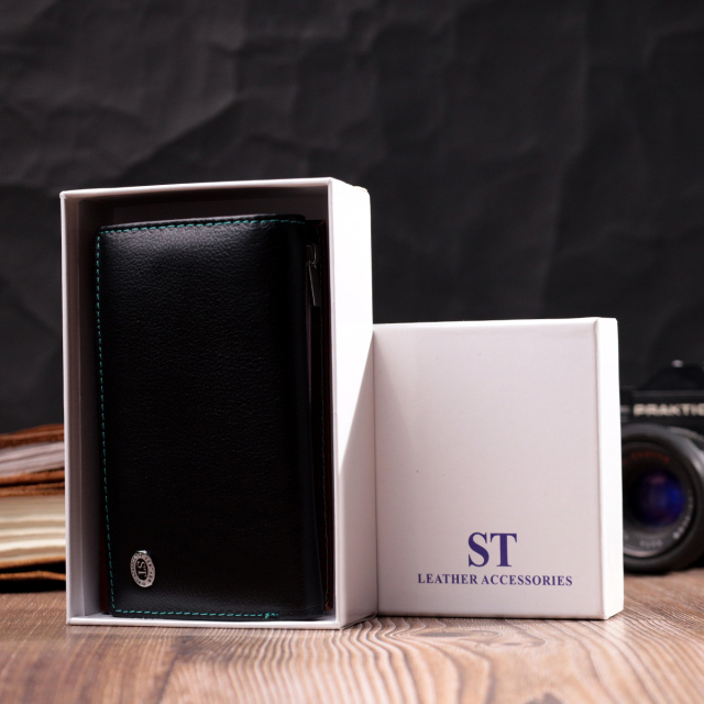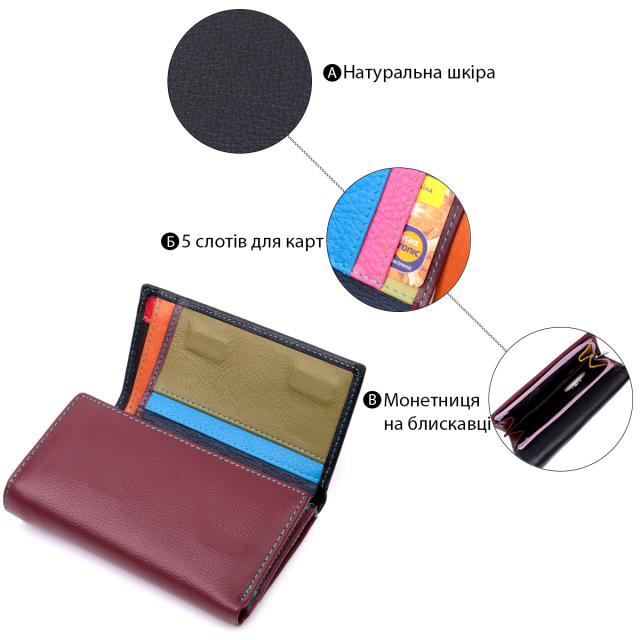Вместительный кожаный кошелек в три сложения для женщин ST Leather 19444 Разноцветный