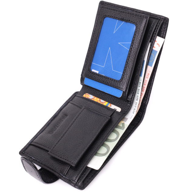 Вместительный мужской бумажник для уверенных в себе мужчин. Аксессуар из натуральной кожи, он состоит из двух вместительных отделений для купюр, кармана на молнии, двух карманов под пленкой, трех ячеек для карт, двух скрытых карманов и кармана для монет. Портмоне дополнено надежной фурнитурой и крепкой подкладкой. Упакован кошелек в фирменную картонную коробку белого цвета.