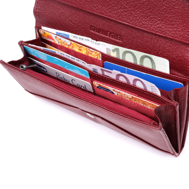 Модное женское портмоне, с необычным геометрическим клапаном, что закрывается на кнопку. Модель пошита из качественной кожи, которая отлично проявила себя в долгосрочной эксплуатации. Аксессуар состоит из двух отделений для купюр, кармана на молнии, восемнадцати ячеек для пластиковых карт, одного скрытого кармана, трех прилегающих карманов и монетницы снаружи. Модель упакована в коробочку, что очень удобно если изделие предназначено для подарка.