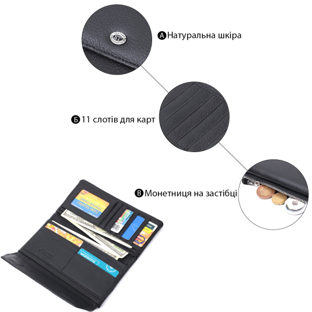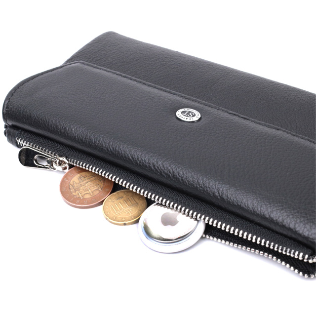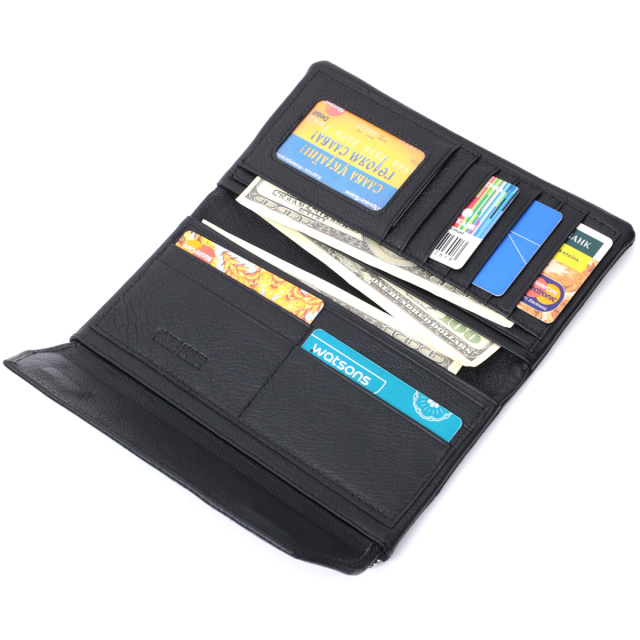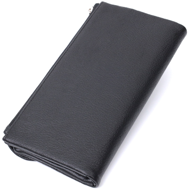 Стильный вместительный кошелек для женщин из натуральной качественной кожи. Модель имеет большой размер и закрывается на магнит. Снаружи можно увидеть отделение для монет, что закрывается на молнию. Снаружи изделие прошито ровной строчкой по краю и украшено металлическим логотипом компании производителя, которое размещено на клапане посередине. Портмоне дополнено надежной фурнитурой и крепкой подкладкой. Упакован аксессуар в белую плотную картонную коробку с фирменным логотипом.