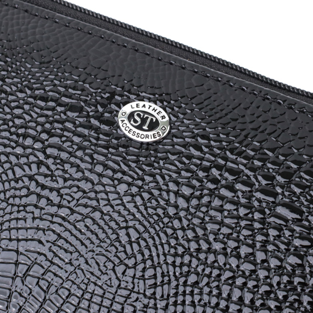 Лакированный тонкий кошелек с фактурой под рептилию из натуральной кожи ST Leather 22716 Черный