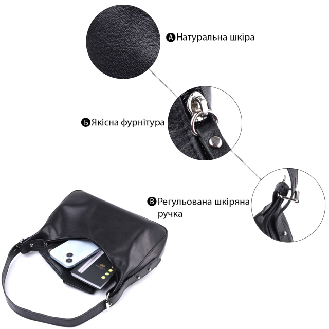 Женская сумка багет с регулируемым ремнем из гладкой натуральной кожи Shvigel 22834 Черная