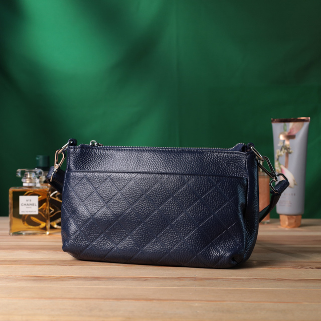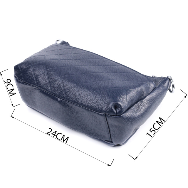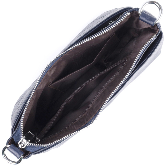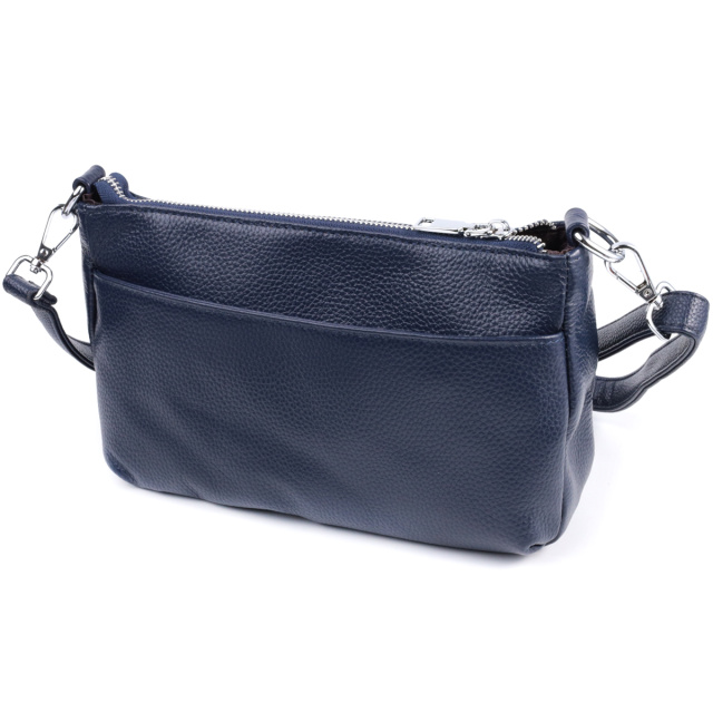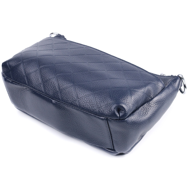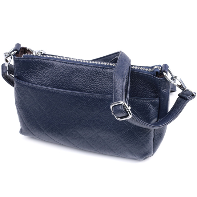 Стильная сумка для женщин в красивом синем цвете из натуральной мягкой кожи высокого качества. Изделие очень удобное, можно носить на плече и в руках. На лицевой стороне сумка декорирована ромбовидным тиснением, что придает особого шарму изделию. Модель дополнена фурнитурой цвета серебра. Аксессуар имеет три отделения, и два кармашки - один на молнии и один открытого типа, в отделении, что посередине. Идеальный вариант сумки на каждый день.