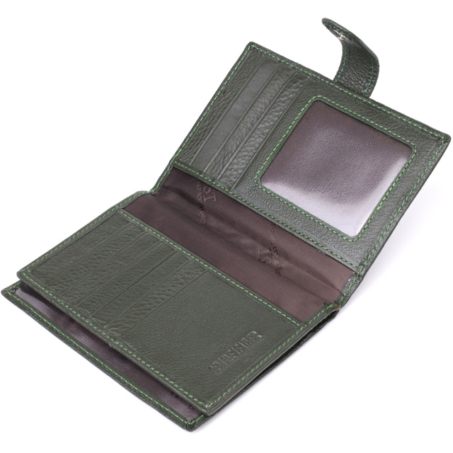 Оригинальная обложка для документов и бумажник «два в одном» — универсальное и практичное решение для тех, кто ценит порядок, комфорт и элегантность в повседневных деталях. Выполненный в классическом двойном сложении и закрывающийся на хлястик с кнопкой, аксессуар обеспечивает надёжное хранение всех необходимых вещей. Изготовлен из натуральной чёрной кожи высокого качества — материала, который отличается мягкой текстурой, устойчивостью к износу и приятными тактильными ощущениями. Несмотря на компактные размеры, изделие очень вместительное внутри: оно легко вмещает документы, купюры, банковские карты и другие мелочи. Дизайн дополнен ровной декоративной строчкой по периметру и аккуратным фирменным логотипом в нижнем правом углу — лаконичный акцент, подтверждающий оригинальность и высокий уровень исполнения. Аксессуар поставляется в фирменной упаковке — стильной картонной коробке, что делает его отличным выбором в качестве подарка.