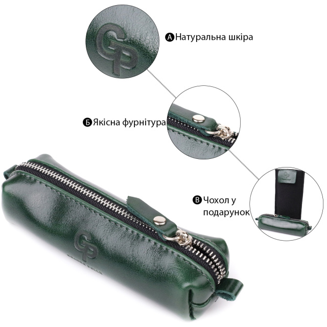 Элегантная ключница-тубус на молнии, выполненная из натуральной кожи высокого качества — практичный и стильный аксессуар, который подойдет как мужчинам, так и женщинам. Модель представлена в универсальном и насыщенном зеленом цвете, который добавляет изюминку, оставаясь при этом сдержанным и благородным. Компактная форма тубуса делает ключницу удобной для повседневного использования — она легко помещается в сумке, рюкзаке или кармане, не занимая лишнего места. Молния надежно фиксирует содержимое внутри, а мягкая кожа бережно сохраняет как ключи, так и окружающие вещи: забудьте о царапинах на экране телефона или других повреждениях. Изделие поставляется в фирменном чехле, что делает его отличным решением не только для личного использования, но и в качестве стильного подарка для близких.