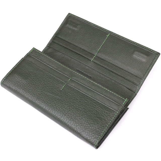 Материал: натуральная кожа; Цвет: зеленый; Размеры (ШхВхГ)см: 18,5х9х3см; Страна производства: Китай. Особенности: - 3 широких отделений для