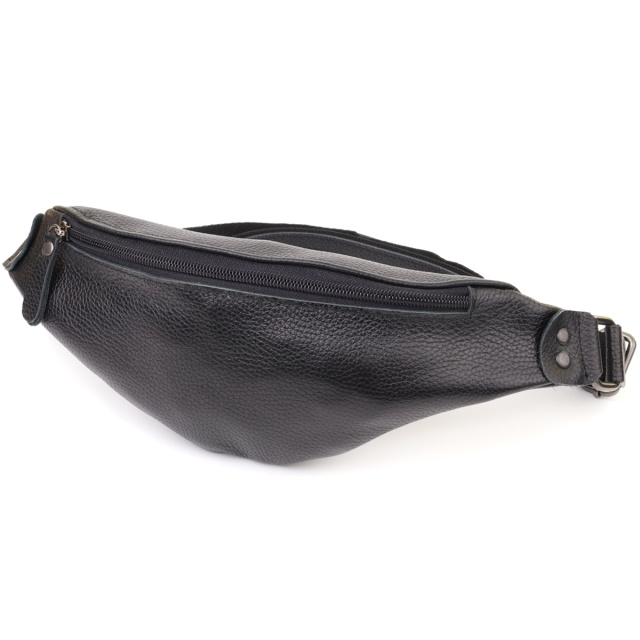 Удобная сумка бананка для мужчин из зернистой натуральной кожи Shvigel 23136 Черный