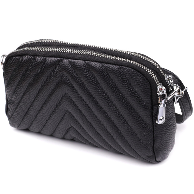 Эффектная черная кожаная сумка с оригинальной прострочкой в виде треугольников — это стильный аксессуар, сочетающий в себе современный дизайн и практичную конструкцию. Геометрический узор придает изделию динамичность и визуальную структуру, подчёркивая фактуру натуральной кожи и делая сумку особенно выразительной.