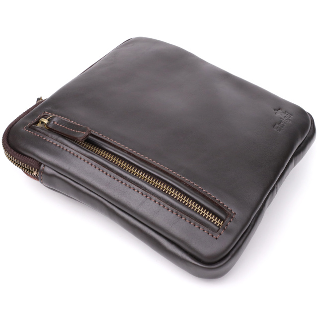 Эта мужская вертикальная сумка изготовлена украинским брендом SHVIGEL, который известен качественными кожаными аксессуарами и вниманием к деталям. Натуральная гладкая кожа насыщенного коричневого цвета подчеркивает элегантность, а фирменное тиснение логотипа подтверждает оригинальность изделия.