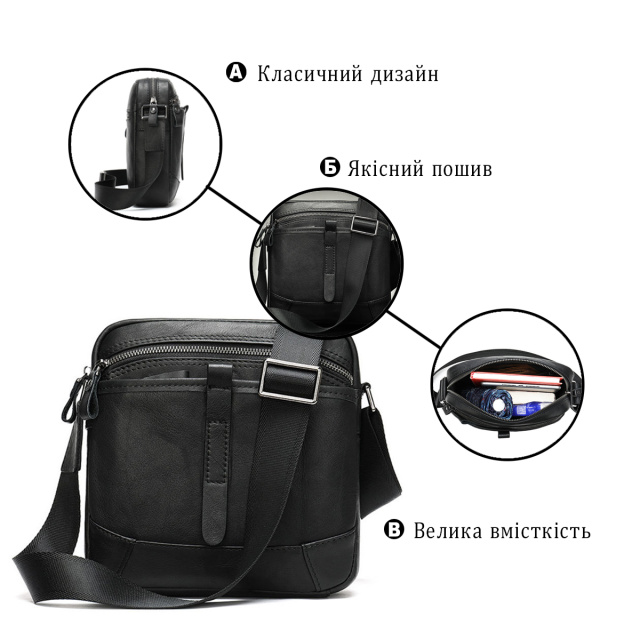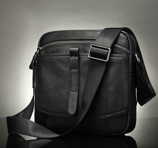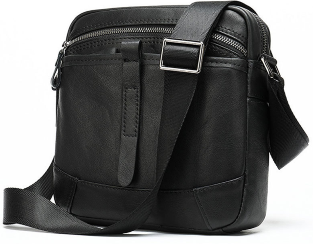 Компактная мужская сумка из натуральной кожи классического черного цвета и горизонтального формата. Внутри - коричневая текстильная подкладка. Дополнено изделие фурнитурой серебристого цвета из крепкого металла. Сумка станет идеальным помощником мужчине на каждый день. Изделие создано для мужчин, которые ценят качество и компактный размер. С ней будет также очень удобно ходить на работу. Изделие станет чудесным подарком для любого мужчины. В комплекте к сумке идет пылезащитный чехол. На лицевой стороне сумка дополнена кожаным хлястиком.