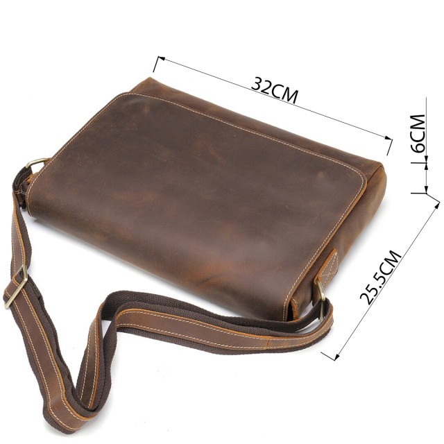 Качественная сумка из натуральной кожи Crazy horse. Многие клиенты любят кожу такого плана за ее внешний вид и винтажность. Аксессуары из такой кожи через время смотрятся очень роскошно и с потертостями, что придает эффект старины. По краям модель прошита светлой строчкой. Сумка дополнена текстильным ремешком с кожаной вставкой для удобной эксплуатации. Внутри качественная текстильная подкладка коричневого цвета. Сумка очень практичная и функциональная. Сумка очень комфортная в использовании и носится достаточно долго. Будет прекрасным подарком для близкого человека.
