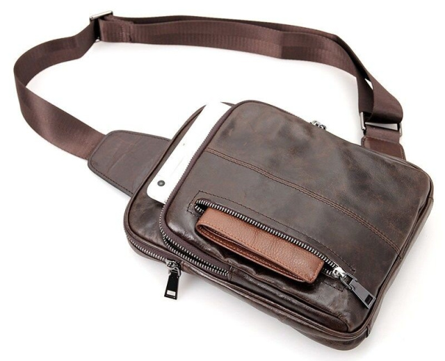 Современная кожаная сумка, в которой Вы можете переносить самое нужное. Кожа, из которой выполнен аксессуар имеет легкий, едва заметный блеск. Цвет фурнитуры: серебро. На лицевой стороне расположены 2 кармана на молниях. Сумка упакован в текстильный пылезащитный мешочек.