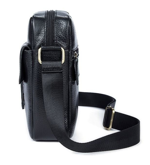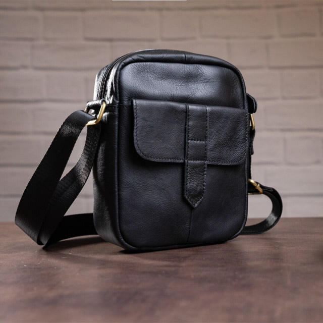 Сумка дополнена фурнитурой золотистого цвета и прошита по краям черной нитью. Внутри коричневая текстильная подкладка. Аксессуар удобно носить на плече с помощью ремня. Хороший вариант на каждый день. Сумка не занимает много места. В уходе модель не прихотливая и долго носится. Будет идеальным вариантом для подарка близкому человеку. Аксессуар упакован в тканевый мешок.