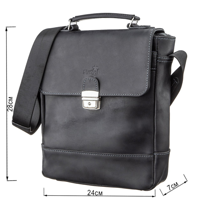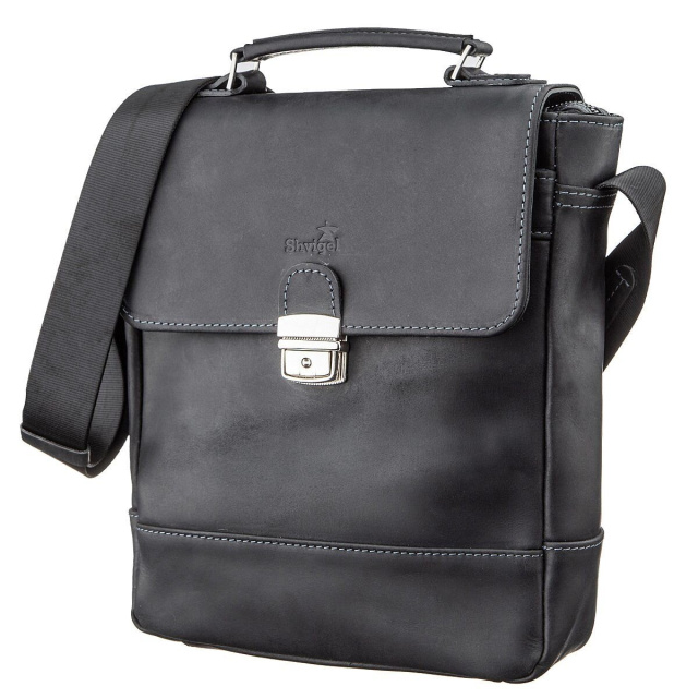 Отличительной особенностью такой сумки есть, то что она закрывается на ключ. Аксессуар прошит по краям светло-голубой нитью. Кожа Crazy Horse смотрится очень роскошно и изысканно. Имеет очень удобный и оптимальный размер. Продуманный дизайн аксессуара позволит носить вам с собой все самые необходимые вещи. Со временем на сумке из такой кожи остаются царапины, что придае ей эффекта старины, за который наши клиенты и полюбили эти модели.