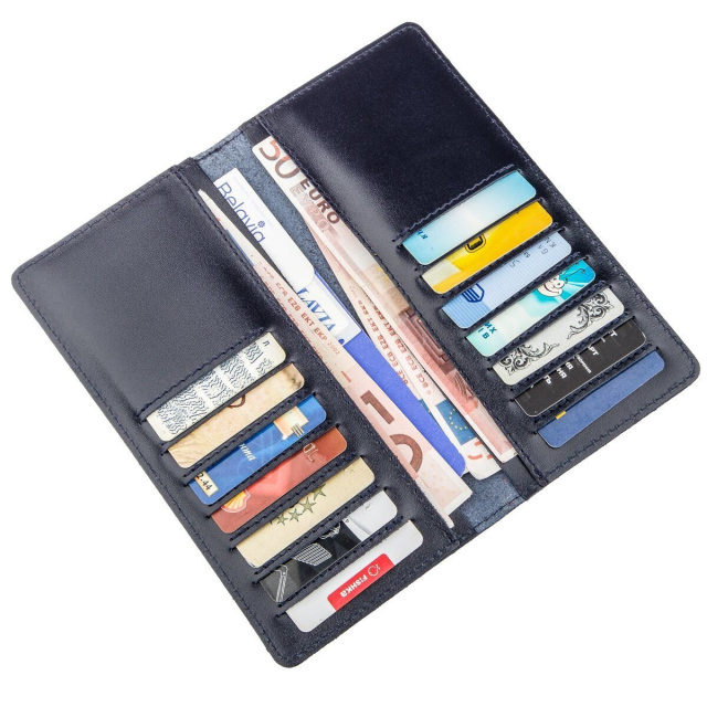 Тоненький кожаный бумажник из натуральной кожи. На лицевой стороне тисненый логотип бренда. Бумажник подойдет для вас, если вы не любите носить с собой монеты, и отдаете предпочтение карточкам. Модель очень вместительная по количеству карт. Внутри – 14 слотов для карточек и визиток. Дизайн модели строгий и в классическом стиле. Выдержанный внешний вид бумажника подчеркнет ваш статус. По краям модель прошита ровной строчкой. Изделие прекрасно носится и очень практичное.