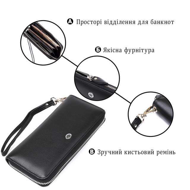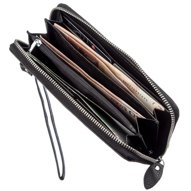 Шикарный клатч для неподражаемых женщин в деловом стиле. Имеет красивый и строгий дизайн. Изготовлен из добротной высококачественной натуральной кожи с отменными износостойкими характеристиками и свойствами. Цвета изделия – насыщенно черный, что придает аксессуару универсальность и возможность носить его при любом гардеробе хозяйки. Клатч легко поместиться в дамскую сумочку, благодаря своим небольшим размерам. А также его можно носить как отдельный аксессуар на запястье с помощью специального ремешка, который идет в комплекте. Такой изделие станет незабываемым приобретением или подарком близкому человеку. Упакован кошелек-клатч в картонную фирменную коробку.