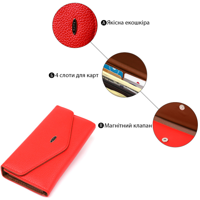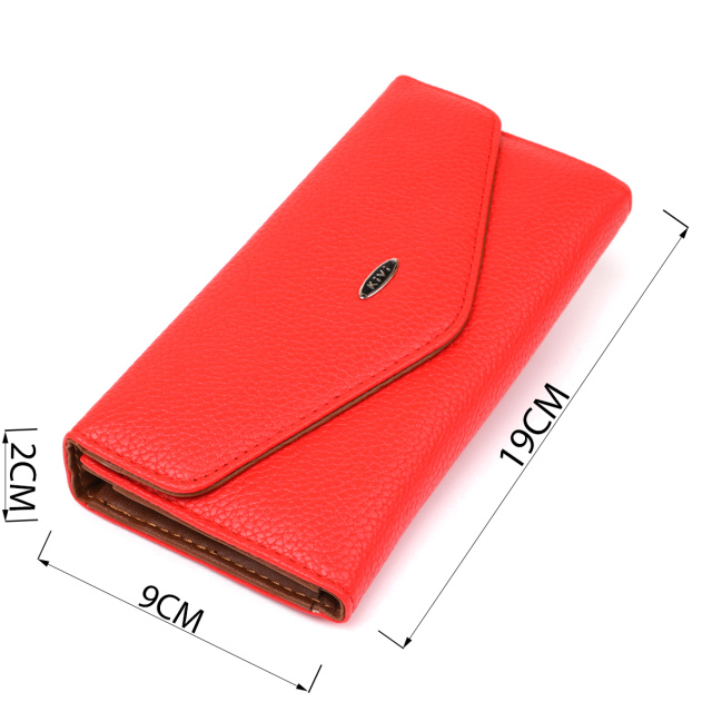 Ярко-красный кошелек будет по душе даже самой переборчивой девушке. С таким кошельком вам будет сложно остаться незамеченным. На лицевой стороне аксессуар украшает металлический логотип бренда. По краям изделие прошито ровной красной строчкой. Аксессуар будет прекрасным и желанным подарком для любой девушки.