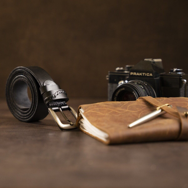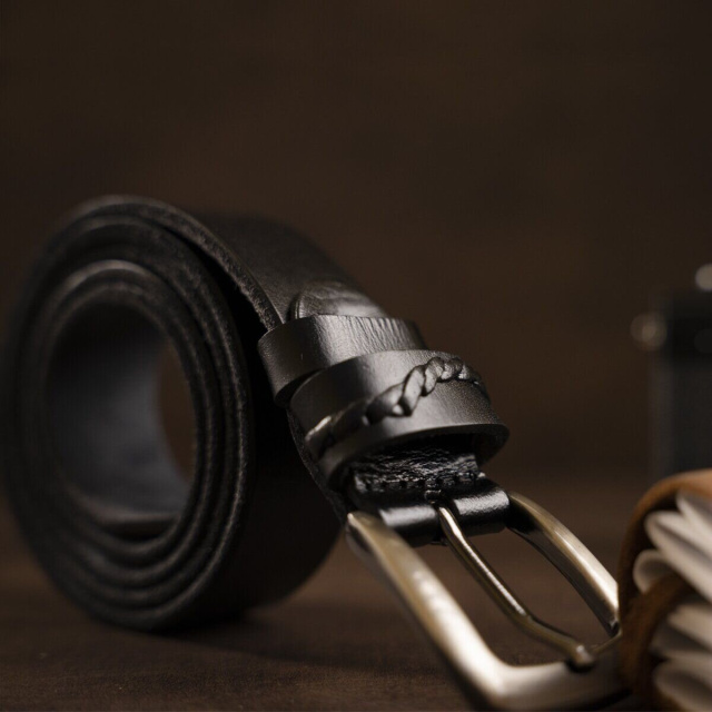 Тонкий мужской ремень в классическом стиле из натуральной кожи. Изделие подойдет для тех, кто не любит массивные аксессуары. Ремень оснащен пряжкой из крепкого металла с закругленными углами. Цвет пряжки – серебро. С внутренней стороны ремень серый. В комплекте фирменная картонная коробка.