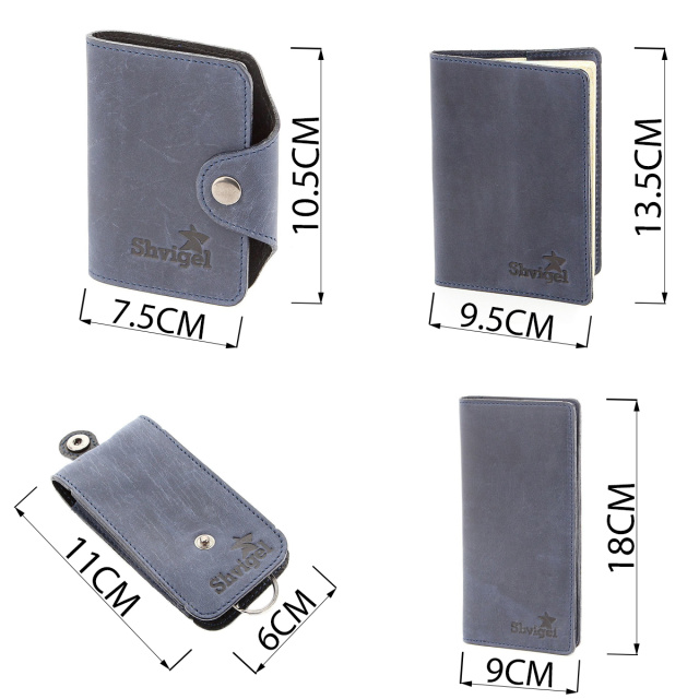 Шикарный мужской комплект аксессуаров, темно-синего цвета, изготовлен из высококачественной натуральной кожи. Состоит набор из: