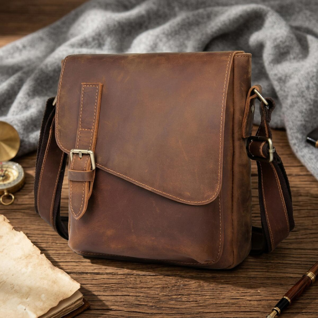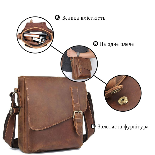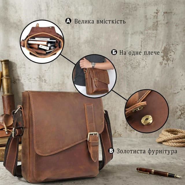 Благодаря продуманной конструкции сумка хорошо подходит для документов, телефона, кошелька, ключей и других необходимых мелочей. Это удачный выбор для тех, кто ищет стильную, компактную и функциональную кожаную мужскую сумку на каждый день.