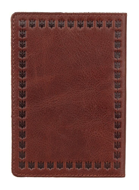 Роскошная обложка для паспорта, коричневого цвета с гербом Украины, изготовлена из натуральной кожи высокого качества.
