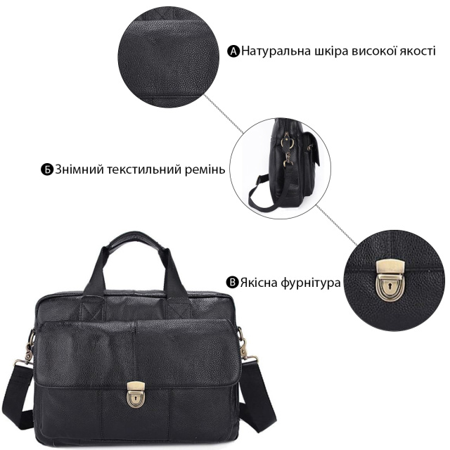 Аксессуар дополнен съемным текстильным ремешком для носки на плече и ручками для носки в руках. Портфель имеет оригинальный и стильный дизайн, разработанный специально для деловых мужчин. Чтоб ваши вещи были в безопасности сумка дополнена замком, который закрывается на ключ. Аксессуар будет идеальным вариантом на работу или учебу. Портфель дополнен золотистой фурнитурой и прошит черной нитью. Будет прекрасным подарком для близкого человека.