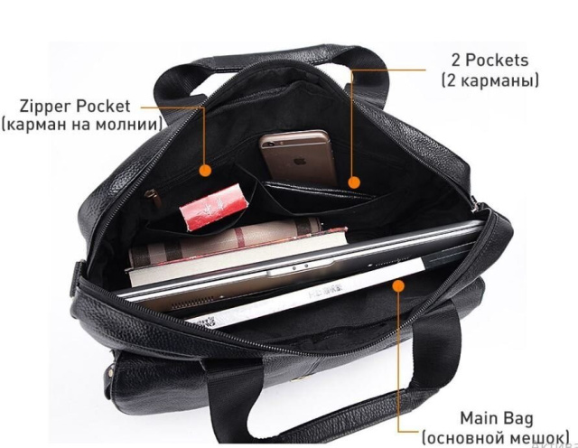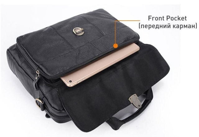Цвет: черный; Материал: натуральная кожа высокого качества; Размер (ШхВхГ, см): 24х35х7. Страна производитель: Китай. Внутри: - основной...