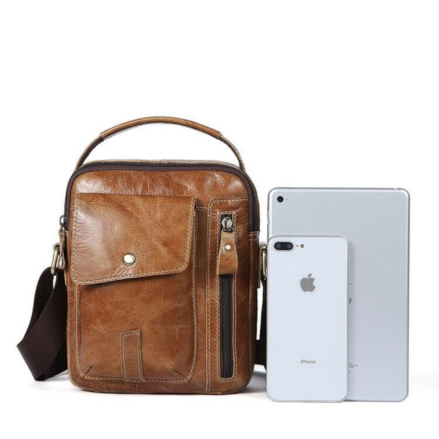 Солиднейшая сумка из натуральной кожи светло-коричневого цвета. Аксессуар прошит по краям нитью бежевого цвета. Вы можете носить сумку как на работу , так и на встречи. Есть ручка для носки на плече и кожаная ручка, чтобы носить в руке. Аксессуар дополнен разнообразными карманами для удобства. Кожаная сумка всегда служит намного дольше, чем текстильная или из заменителей. Такая сумка будет отличным дополнением к вашему стилю и закончит ваш образ.