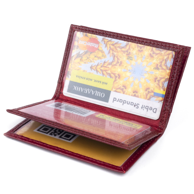 Новинка. Маленькая визитница из натуральной кожи в благородном бордовом цвете. Аксессуар имеет достаточно слотов для кредиток. Выглядит визитница в виде книжечки. Модель имеет 6 ячеек внутри и 2 ячейки снаружи для кредиток. С таким аксессуаром ваши карточки всегда будут в одном месте. Модель без застежки. В комплекте идет фирменная упаковка. Визитница станет прекрасным подарком для женщины любого возраста.
