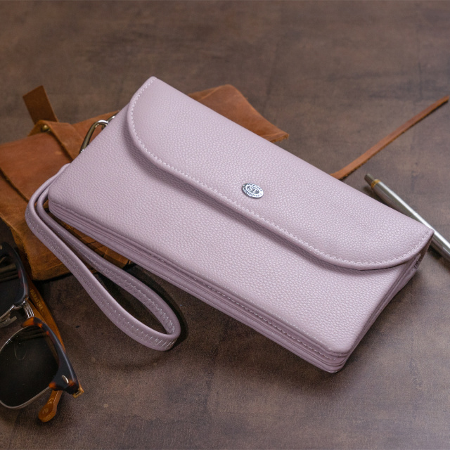 Данный клатч имеет не только привлекательный дизайн,но и выглядит очень модно и стильно, а благодаря своему лиловому оригинальному цвету не оставит равнодушной ни одну девушку. Кожа, из которой изготовлен клатч, имеет природную фактуру. На лицевой стороне металлический логотип бренда. Фурнитура надежная. Внутри достаточно места для удобного расположения бумажных купюр, банковских, дисконтных карт, визиток, документов, мобильного телефона и личных вещей ведь отделения просторные и выполненные с текстиля. С таким клатчем будет удобно пойти на вечеринку. Аксессуар с легкостью заменит вам вечернюю сумочку. Клатч упакован в фирменную коробку от производителя. В каталоге нашего интернет-магазина есть достаточно большой ассортимент качественных аксессуаров, который понравятся многим, благодаря функциональности и внешней привлекательности. Заказывайте у нас по самым доступным ценам.