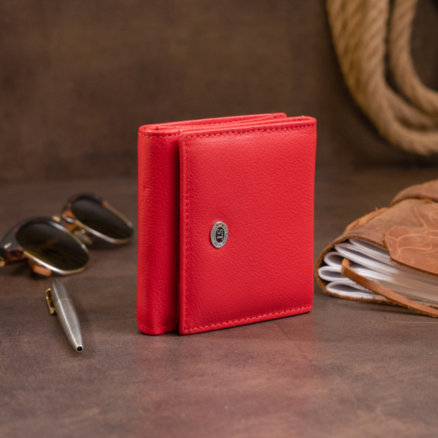 Кожаный женский кошелек компактного размера и яркого красного цвета. Изделие для уверенных в себе женщин, которые хотят выделиться из толпы и просто для поклонников ярких оттенков. Яркие аксессуары всегда очень стильно смотрятся и выделяются.
