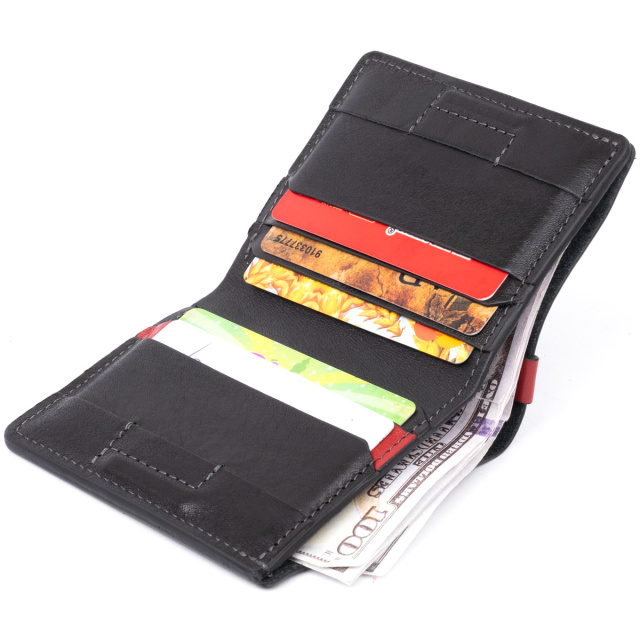 Стильный аксессуар с дополнением красных вставок кожи. Аксессуар выполнен в матовой коже. Данный тип кожи смотрится очень дорого и солидно. Со временем винтажная кожа приобретает потертости, что придает ей особого шарма. Портмоне очень компактное. Идеально подойдет для любителей вещей, которые занимают минимум места. Такой аксессуар максимально облегчит вашу жизнь ведь дополнен самым нужным функционалом. Модель имеет оригинальный дизайн. Изделие будет по душе тем, кто предпочитает карточки купюрам и монетам. Современные мужчины экономят не только свое время, но и место в сумке. Компактные аксессуары всегда были и будут популярны. Выполнено портмоне в винтажной коже. В комплекте к изделию идет войлочный чехол, что делает его особенно привлекательным вариантом на подарок вашим знакомым и близким.