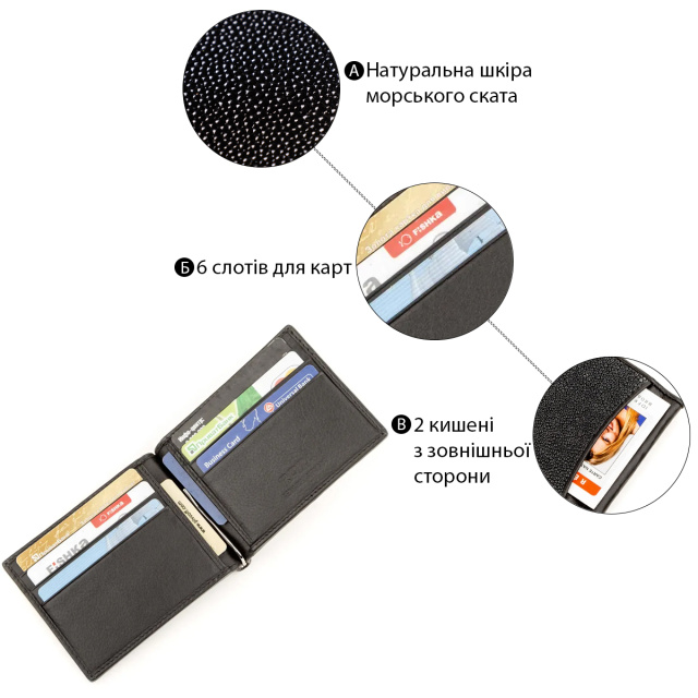 Стильный компактный зажим для денег из кожи морского ската. Приятный на ощупь. Имеет высокую износостойкость и практически не убиваем. Роскошный вариант. Подчеркнет ваш статус. Выглядит очень богато. Благодаря высочайшему качеству такой зажим для денег будет надежно и верно служить своему обладателю не один год. Может быть отличным вариантом для подарка. В нашем интернет магазине огромный ассортимент на любой вкус и цвет. Цены и качество вас приятно удивят.