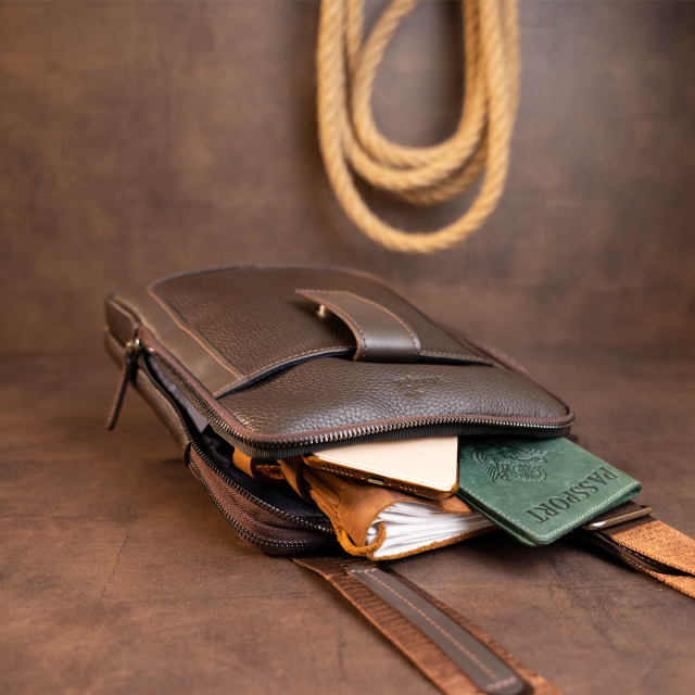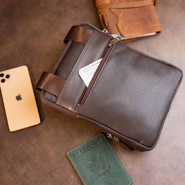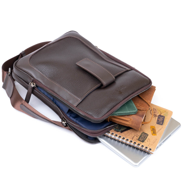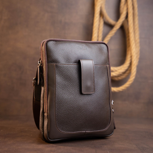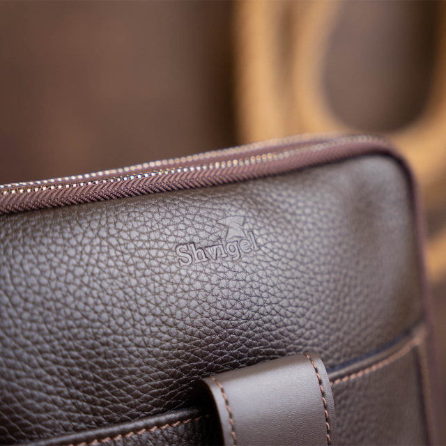 Практичная сумка в зернистой коже "флотар" на два отделения. Производство - Украина. Зернистая кожа совсем неприхотлива в уходе. Долго служит. На изделиях из зернистой кожи меньше видны царапины и потертости. Мужской планшет - идеальный вариант сумки на каждый день и для встреч. В дизайне модели нет никаких лишних деталей при этом сумка выглядит очень модно и стильно. На лицевой стороне модели тиснение в виде логотипа бренда. В дизайне сумки используется вставки гладкой кожи, что подчеркнет ваше отменное чувство стиля. Аксессуар дополнен текстильной несъемной ручкой. Кожаная сумка - лучший подарок для любого мужчины. Если вы хотите такую же модель в черном цвете - код для поиска 11283, в винтажной коже - 11285.