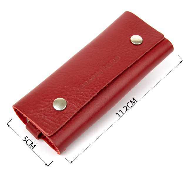 Материал: натуральная кожа. Цвет: красный. Размеры (ШхВхГ, см): 5х11,2 см. Страна производитель: Украина. Бренд: GRANDE PELLE. Описание: - закрывается на две металлические кнопки; - внутри надежное металлическое кольцо-даржатель и карабин серебреного цвета; Добротная компактная ключница из высококачественной натуральной кожи. Закрывается в нахлест с помощью двух металлических кнопок. Имеет красивый насыщенный красный цвет и такие же швы, которые сделаны очень надежно и аккуратно. Упакована в черный фирменный чехол.